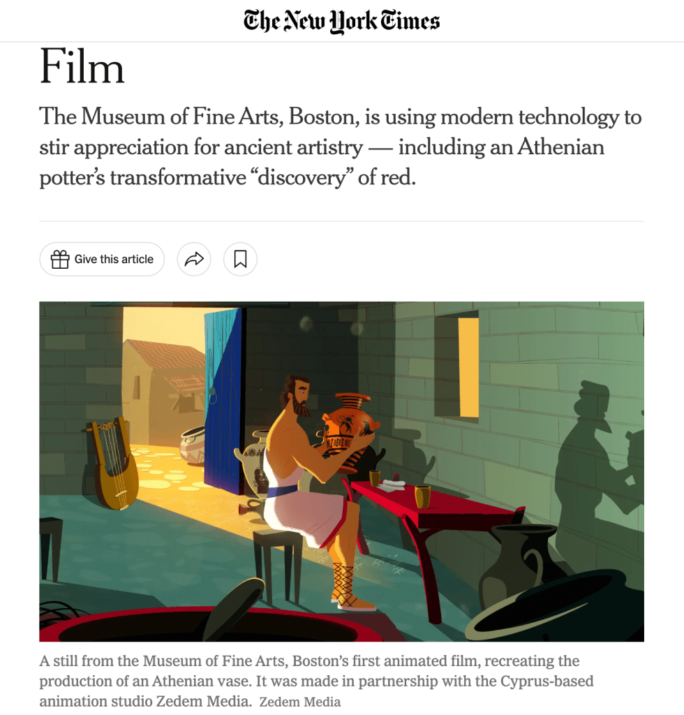 I was the script writer for ‘The ‘Figures in Red’ educational video made we made at Zedem Media for the Museum of Fine Arts, Boston. The animated video was featured in various publications such as The New York Times and the Animation World Network.